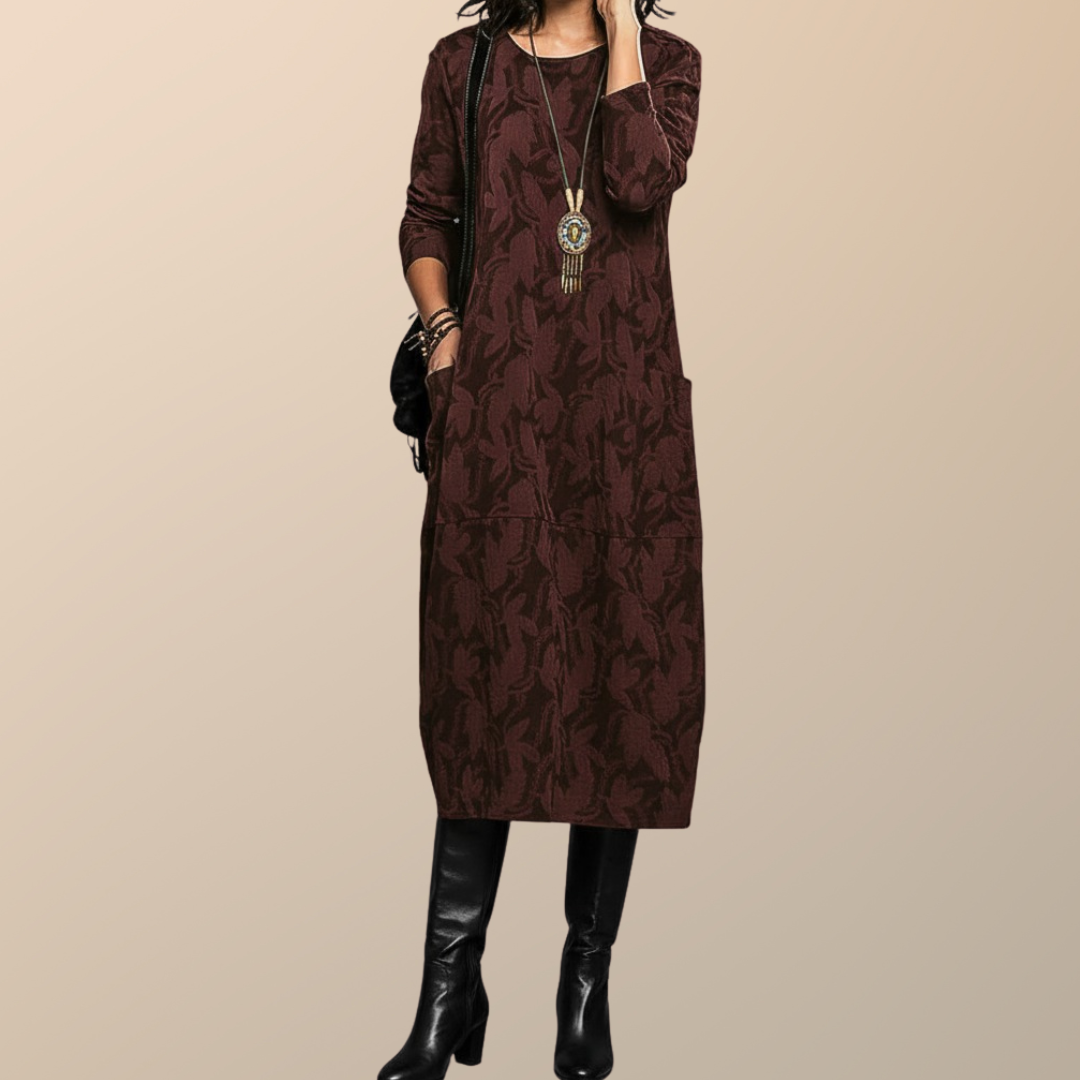 A versatile wardrobe staple that pairs beautifully with long boots, heels, or layered accessories for a chic, vintage-inspired style.