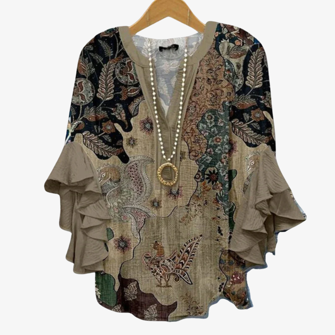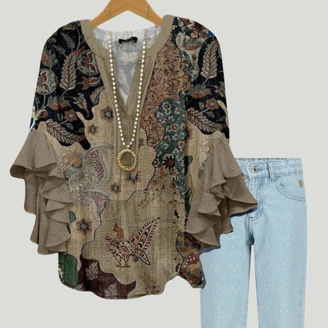 Solange | Modern Geo-Patch Soft Knit Blouse